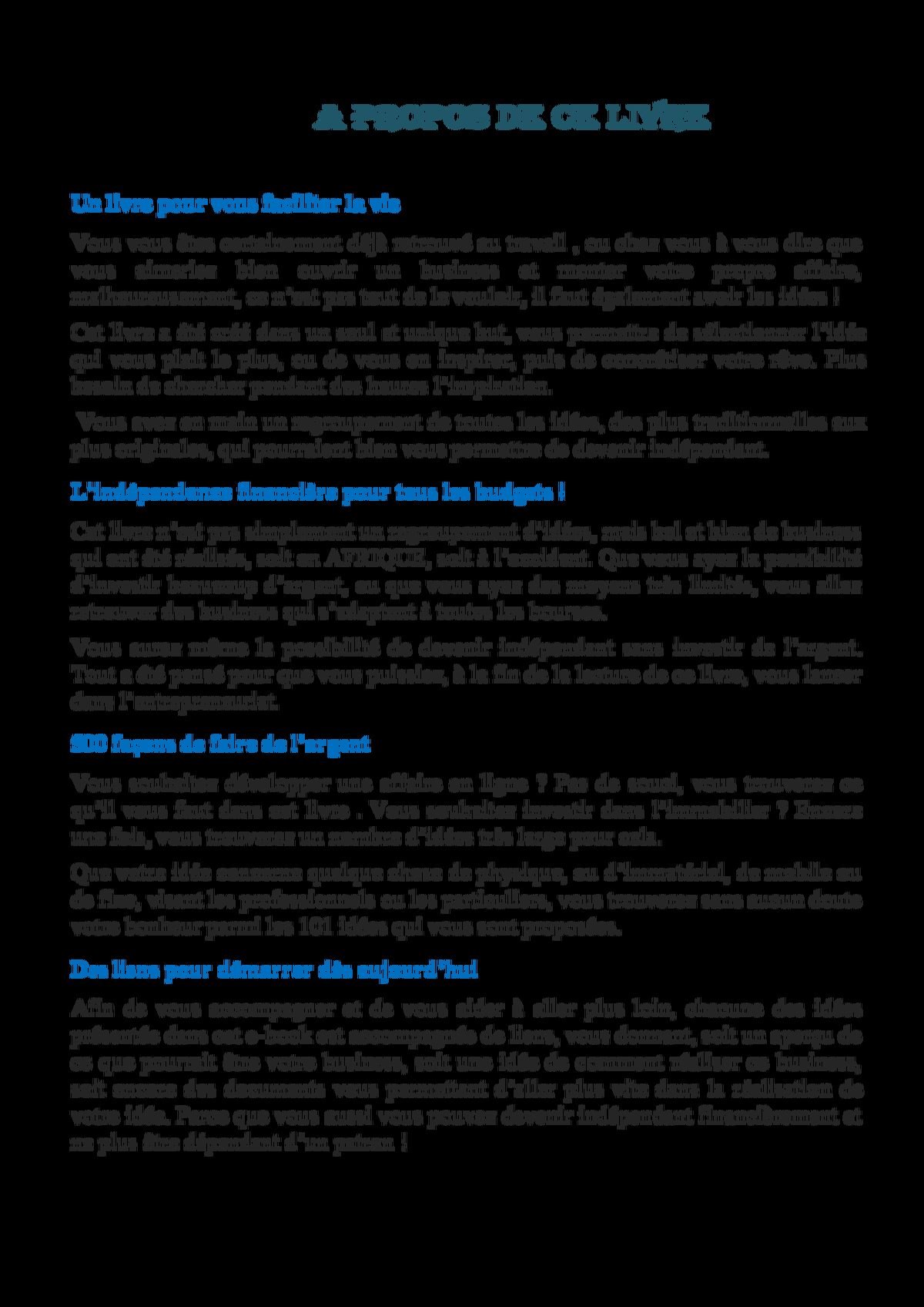 💥 PROMO PROMO PROMO 24h 📢 Débloquez Votre Potentiel Entrepreneurial en Afrique avec "500 Idées de Business" Rentable en Afrique 🤩! 📚 Prêt à entreprendre ? Ce livre est votre guide ultime ! 500 idées de business, Pour seulement 1 000 FCFA 🤩 Au lieu de 4000f 🥹. 🔴NB: DISPONIBLE EN PDF Que vous soyez salarié, étudiant ambitieux, ménagère en quête d'indépendance, un entrepreneur expérimenté, ou simplement quelqu'un en quête d'opportunités, ce livre est votre atout pour réussir en Afrique. 💪 **N'attendez plus pour concrétiser vos rêves d'entrepreneur.** Commandez votre ebook "500 Idées de Business" maintenant et transformez vos aspirations en réalités. 👉 Voici quelques idées de business détaillés que vous trouverez dans le livre "500 Idées de Business" 👉🏾 Comment Investir dans le transport 👉🏾 Comment ouvrir un lavage auto 👉🏾 Comment ouvrir une poissonnerie 👉🏾 Comment ouvrir une quincaillerie 👉🏾 Comment ouvrir un dépôt de gaz 👉🏾Comment vendre et acheter des bien immobilier 👉🏾 Comment ouvrir une micro finance 👉🏾 Comment créer sa marque de vêtement 👉🏾 Comment devenir producteur agricole 👉🏾 Comment ouvrir un service de pressing 👉🏾 Comment faire de L'import-Export 👉🏾 Comment Faire du Trading Votre succès commence avec l'action. Ne laissez pas cette opportunité passer.