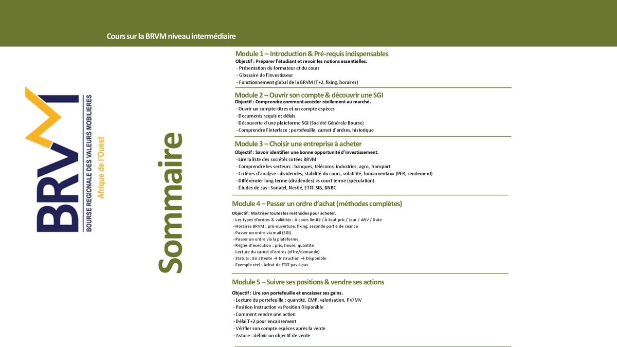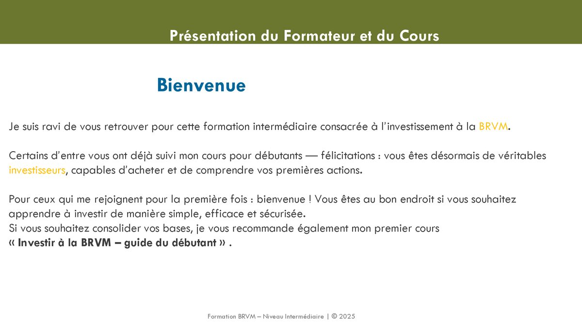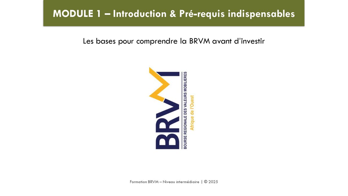 Ce livre est destiné à ceux qui connaissent déjà les bases de la BRVM et souhaitent passer au niveau supérieur. Après avoir compris comment fonctionne la bourse régionale, il est temps d’apprendre comment investir intelligemment, construire une stratégie solide et éviter les erreurs qui coûtent cher. Dans ce guide intermédiaire, tu découvriras : • Comment analyser une action BRVM au-delà du prix • Les principales stratégies d’investissement adaptées au marché BRVM • La différence entre investissement court, moyen et long terme • Comment gérer le risque et sécuriser ses gains • Comment constituer et équilibrer un portefeuille performant • Les erreurs fréquentes des investisseurs intermédiaires et comment les éviter • Des exemples concrets inspirés de situations réelles à la BRVM 📘 Format : Livre PDF ⚡ Accès immédiat après achat 🎯 Idéal pour investisseurs intermédiaires souhaitant structurer leur stratégie Ce livre te permettra de prendre de meilleures décisions, d’investir avec méthode et de développer une vision long terme sur la BRVM.