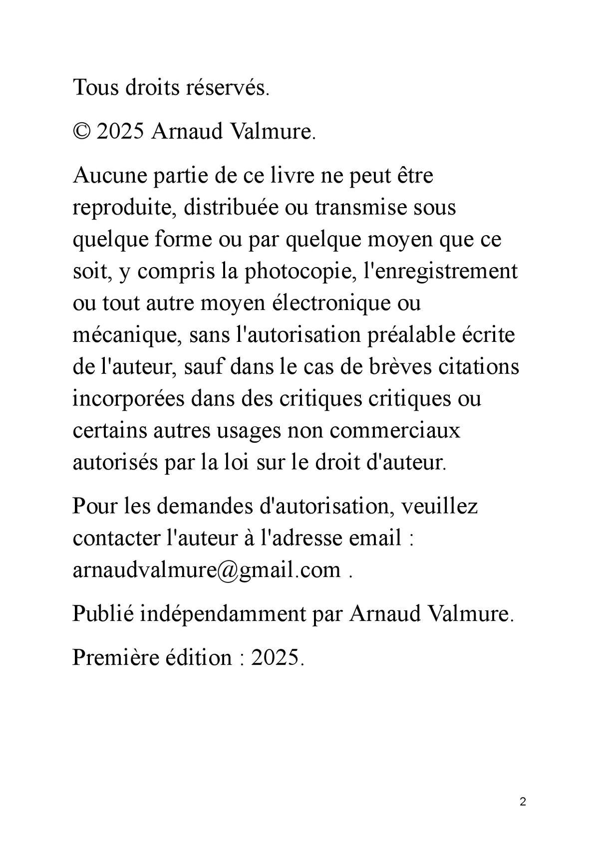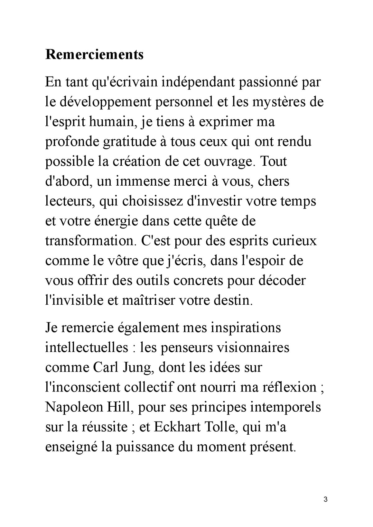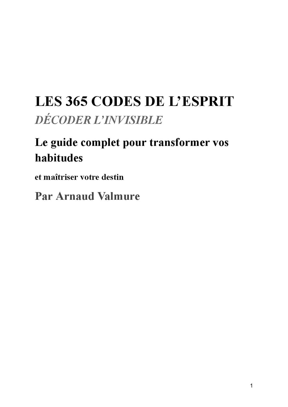 Vous êtes prêt à arrêter de subir votre vie et à commencer à la créer consciemment ? Dans un monde saturé de bruit, de distractions et de croyances limitantes, la plupart des gens vivent sur pilote automatique, répètent les mêmes schémas et obtiennent toujours les mêmes résultats. Et si la clé de votre transformation n’était pas dans une nouvelle méthode miracle… mais dans 365 petites reprogrammations quotidiennes de votre esprit ? LES 365 CODES DE L’ESPRIT – DÉCODER L’INVISIBLE est le système le plus complet et le plus pratique publié à ce jour pour : Identifier et dissoudre vos croyances limitantes en profondeur Reprogrammer votre subconscient grâce à des codes mentaux puissants et scientifiquement inspirés Activer la loi de l’attraction de façon consciente et mesurable Transformer vos habitudes en seulement quelques minutes par jour Développer une confiance invincible, une résilience à toute épreuve et une sérénité profonde Décoder les synchronicités, les signes et les messages de l’univers Maîtriser votre énergie mentale, émotionnelle et spirituelle Sculpter votre destin au lieu de le subir Ce que vous obtenez dans ce livre unique : 365 codes concrets, classés par thématique et par niveau de profondeur 20 chapitres progressifs qui vous emmènent du réveil de la conscience jusqu’à la maîtrise ultime Des protocoles quotidiens de 3 à 10 minutes (stacking d’habitudes, respiration, visualisation, journaling guidé, etc.) Des exemples vécus, des témoignages et des résultats mesurables Une méthode anti-rechute prouvée pour intégrer les changements sur le long terme Des bonus invisibles : rituels du matin & du soir, tracking 90 jours, top 10 codes perso Pour qui est ce livre ? Toute personne qui sent qu’elle est faite pour beaucoup plus Ceux qui ont déjà lu « Le Secret », « Le pouvoir du moment présent », « Becoming Supernatural » ou les œuvres de Neville Goddard et qui veulent passer à la pratique quotidienne Les entrepreneurs spirituels, coachs, thérapeutes, créateurs de contenu qui veulent aligner leur vie ET leur business Les personnes en quête de sens qui veulent vivre une spiritualité moderne, sans dogme et sans ésotérisme flou Ce que les premiers lecteurs disent : « En 4 mois j’ai doublé mes revenus, retrouvé un sommeil profond et je vis des synchronicités tous les jours. Ce livre est une bombe. » – Marie D. « C’est le seul livre que j’ai vraiment appliqué tous les jours. Les résultats sont visibles et durables. » – Julien R. « Arnaud Valmure a réussi là où beaucoup échouent : rendre la transformation spirituelle concrète, mesurable et accessible. » – Sophie L. Prenez la décision aujourd’hui. Ne laissez pas une année de plus s’écouler sans que vous deveniez la version la plus alignée, la plus puissante et la plus heureuse de vous-même. Cliquez sur « Acheter maintenant » et commencez votre première reprogrammation dès ce soir.