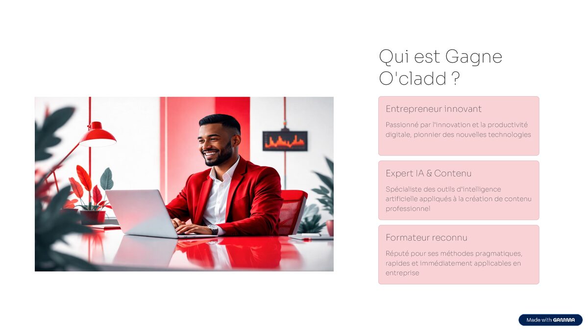🚀 Créer des Présentations Ultra Professionnelles avec Gamma AI & ChatGPT Vous perdez des heures à créer vos PowerPoint ? Ce livre vous montre comment utiliser Gamma AI et ChatGPT pour transformer une simple idée en présentation professionnelle en quelques minutes. 🎯 Dans ce guide pratique, vous allez apprendre : Structurer une présentation claire et impactante Générer automatiquement des slides avec l’IA Créer des supports business, académiques ou marketing Optimiser le design sans être graphiste Exporter en PowerPoint ou PDF prêt à envoyer 💡 Que vous soyez entrepreneur, étudiant, formateur ou créateur de contenu, ce livre vous donne une méthode concrète pour gagner du temps et produire des présentations modernes. 📘 100% pratique – applicable immédiatement.